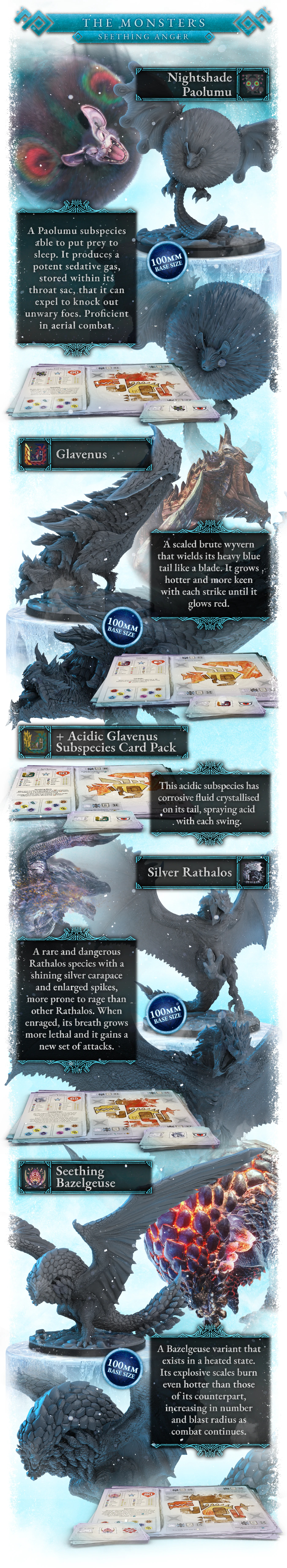 It also introduces not one, not two, but THREE new ways to win your campaign: Seething Bazelgeuse, Silver Rathalos, and Acidic Glavenus all come with 4-star quests, giving you multiple new ways to map out and play your campaigns!